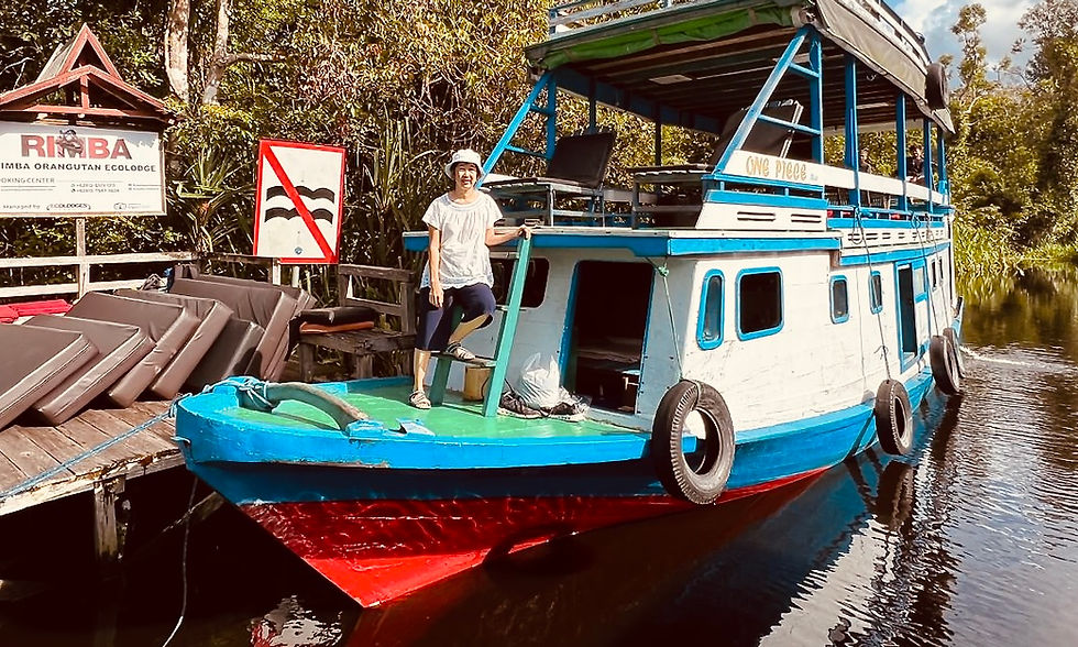Our journey into the jungle took place by river, aboard a traditional wooden boat called a klotok, traveling along the Sekonyer River through landscapes of nipah palms, mangroves, and dense rainforest. Along the way, we caught glimpses of gibbons swinging between the trees, their quiet presence blending into the rhythm of the forest. Then, we trekked and explored deeper into the lush jungle.